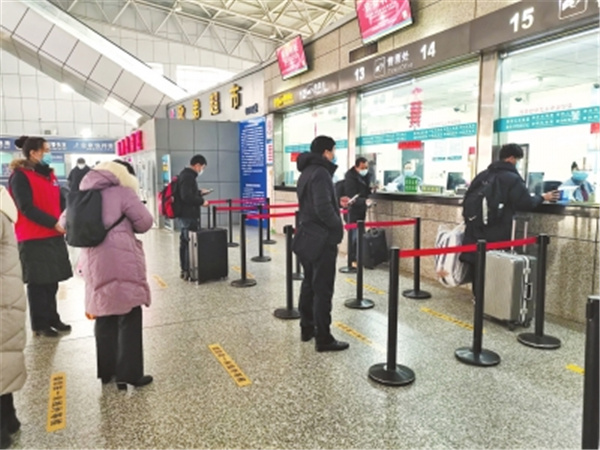 根據(jù)預(yù)測,今年春運,鄭州客運南站客流高峰會出現(xiàn)在2月1日(臘月二十)至2月7日(臘月二十六),以探親流為主。為減少聚集,方便旅客快速購票乘車,該車站開啟6個人工售票窗口和9個自助售票機,全天候安排自助機管理員與導(dǎo)乘人員做好旅客的引導(dǎo)、購票工作。如遇客流高峰,將啟用落客區(qū)、東待發(fā)區(qū)、二樓候車廳,安排工作人員根據(jù)旅客乘車線路引導(dǎo)旅客分散排隊候車。