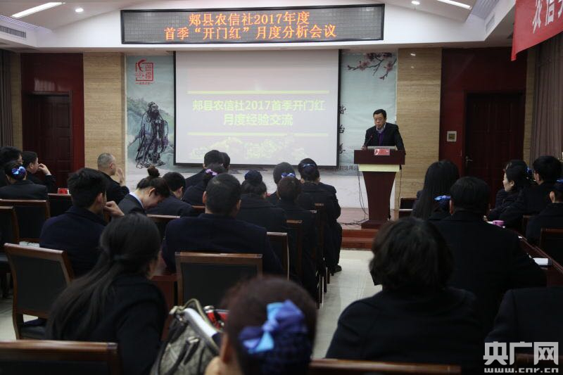 央廣網(wǎng)河南分網(wǎng)2月7日消息 為縱深落實開門紅各項目標(biāo)任務(wù),總結(jié)經(jīng)驗,昂揚奮進(jìn),2月6日上午,郟縣聯(lián)社召開2017年"首季開門紅"月度分析會議,聯(lián)社領(lǐng)導(dǎo)班子出席會議,各社主任、會計、網(wǎng)點負(fù)責(zé)人、大堂經(jīng)理和部分小微貸客戶經(jīng)理參加了會議。