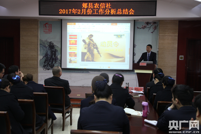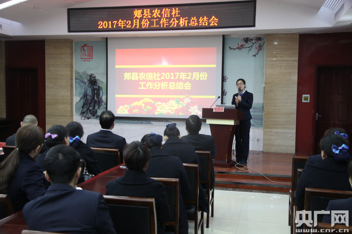 央廣網(wǎng)河南分網(wǎng)消息 3月14日上午,郟縣聯(lián)社召開2017年2月份工作分析總結(jié)會,聯(lián)社領(lǐng)導(dǎo)班子,各部門經(jīng)理、信用社主任、會計、網(wǎng)點負(fù)責(zé)人、部分大堂經(jīng)理和小微信貸客戶經(jīng)理共150余人參加會議。
