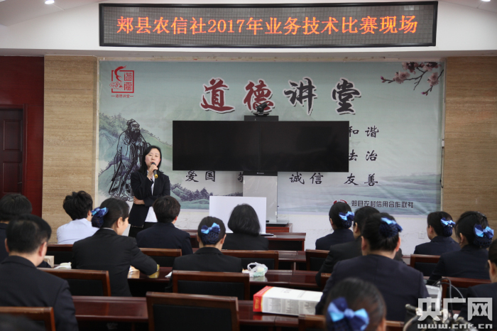 4月12日,郟縣農(nóng)信社2017年業(yè)務(wù)技術(shù)比賽在聯(lián)社南二樓會議室隆重舉行,來自全轄35家營業(yè)網(wǎng)點的108名選手分4個批次參加了比賽,比賽開始前,聯(lián)社副主任梁曉寧到比賽現(xiàn)場為選手們加油助威,強調(diào)全轄員工要不忘初心,扎實掌握服務(wù)基本功,要求相關(guān)裁判部門公平公正,賽出真實成績,鼓勵參賽選手在比賽中取得優(yōu)異成績。