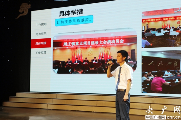 該縣李莊鄉(xiāng)闡述:圍繞“農(nóng)”字做文章,農(nóng)業(yè)富鄉(xiāng);圍繞“文”字做文章,亮點紛呈;圍繞“綠”字做文章,綠色發(fā)展;圍繞“土”字做文章,土中生金的思路,大營鎮(zhèn)演說的“讓2萬多群眾吃上干凈的丹江水”的民生工程博得大家的掌聲。食藥局保護群眾“舌尖上的安全”、衛(wèi)計委讓“群眾得到全省一流的醫(yī)療保障”、扶貧辦“早日讓群眾脫貧奔小康”、環(huán)保局“加大‘散亂污’企業(yè)治理,保護碧水藍天”........。 臺上一分鐘 臺下十年功。要在擂臺賽上言之有物,不被別人比下去,功夫全在會場外,靠的是日常工作上的厚積薄發(fā)。5分鐘的發(fā)言時間不長,怎樣利用好每一秒鐘,讓每一句話都有含金量,展現(xiàn)當(dāng)?shù)馗刹咳罕姼墒聞?chuàng)業(yè)的精氣神?現(xiàn)場“PK”演說者們都用實際行動給出答案:對比數(shù)據(jù)、分析案例、正視成績、查擺不足……
