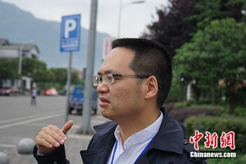 漢旺鎮(zhèn)黨委副書(shū)記王強(qiáng)接受記者采訪(fǎng)。中新網(wǎng)記者 宋宇晟 攝
