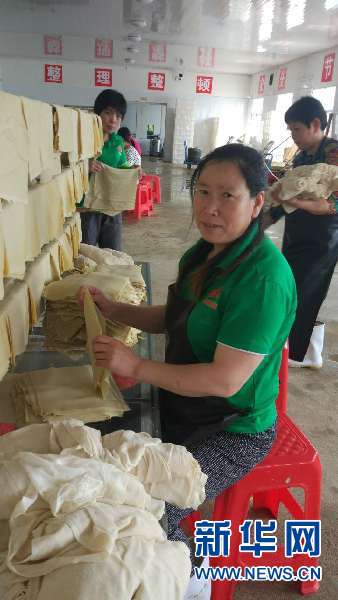 黎賢菊是羅山縣明珠農(nóng)業(yè)有限公司鐵鋪豆腐廠的一名普通女工!凹依5口人,負(fù)擔(dān)挺重的。”她一邊麻利地做著千張豆腐,一邊介紹家里的情況,“女兒在鄭州上大學(xué),每月上千塊,兒子上小學(xué),家里開銷每月也得一二百,大伯子沒(méi)有成家,老公打個(gè)零工,有一晌沒(méi)一晌的,一年下來(lái),家里的收入也就2萬(wàn)塊左右,現(xiàn)在來(lái)豆腐廠打工,算是家里的一點(diǎn)兒貼補(bǔ)吧。”