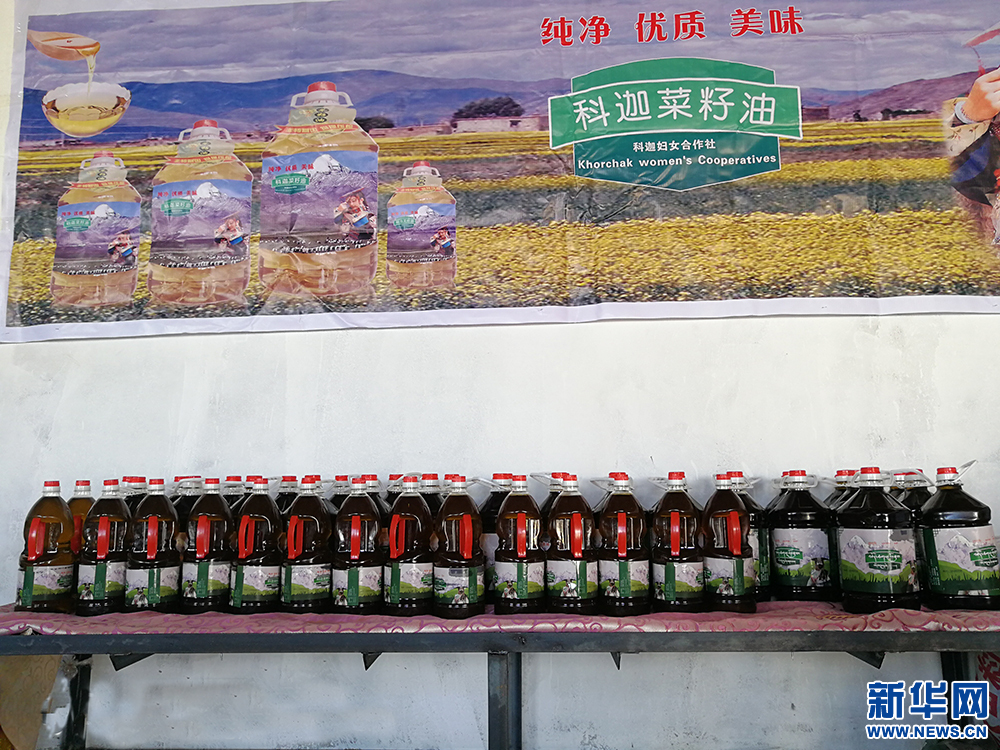 據(jù)介紹,合作社在平整的土地上,隔年種上油菜和豌豆,深加工后出售。油菜籽榨油裝到貼有標(biāo)簽的桶里出售,豌豆通過水泡、翻炒、磨粉等工序,制作成豌豆糌粑,都很受市場歡迎。