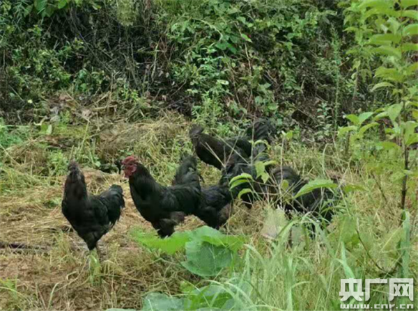 農(nóng)場散養(yǎng)的黑雞(央廣網(wǎng)發(fā) 通訊員 陳紅源 供圖)