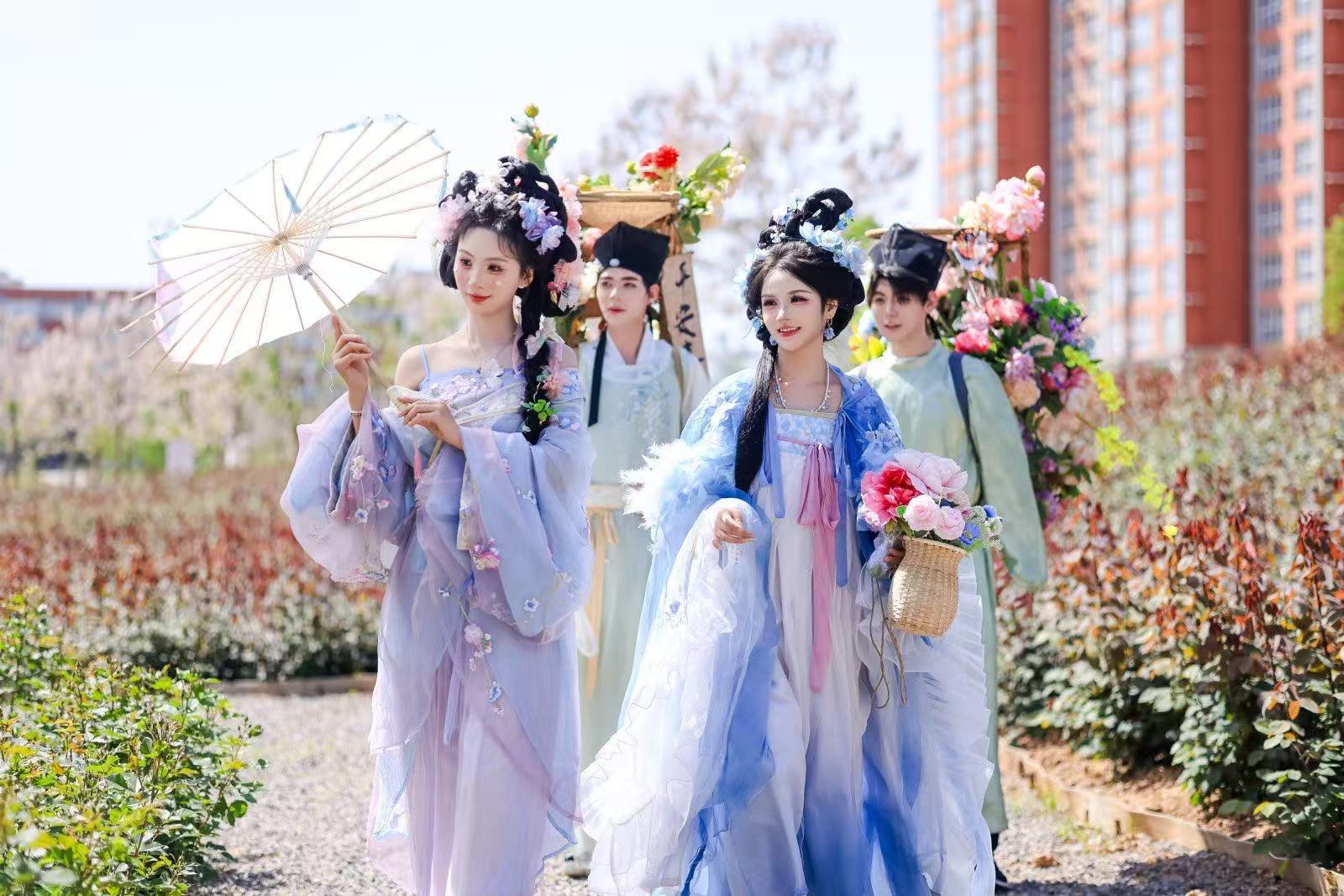 “十二花神”裙裾飛揚(yáng),攜滿身風(fēng)雅;“簪花郎”身姿挺拔,懷揣少年意氣。