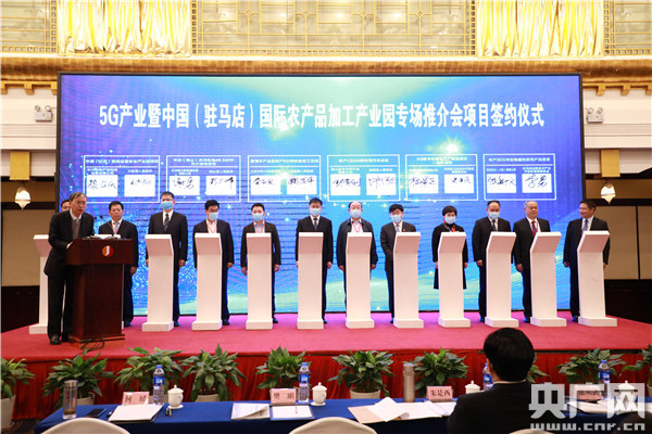 5G產(chǎn)業(yè)暨中國(駐馬店)國際農(nóng)產(chǎn)品加工產(chǎn)業(yè)園專場推介會項目簽約儀式(央廣網(wǎng)記者 汪寧 攝)