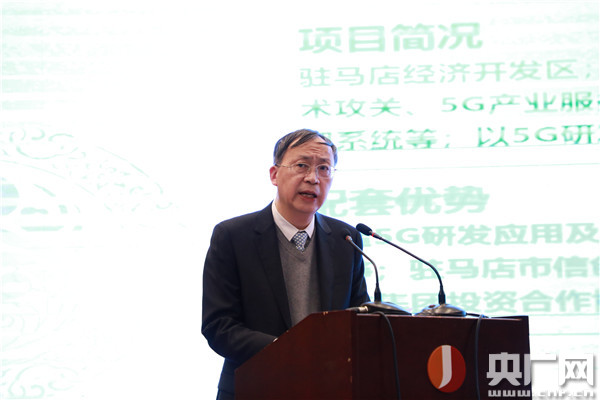 駐馬店市副市長何晞就駐馬店市5G產(chǎn)業(yè)暨中國(駐馬店)國際農(nóng)產(chǎn)品加工產(chǎn)業(yè)園進行推介。(央廣網(wǎng)記者 汪寧 攝)