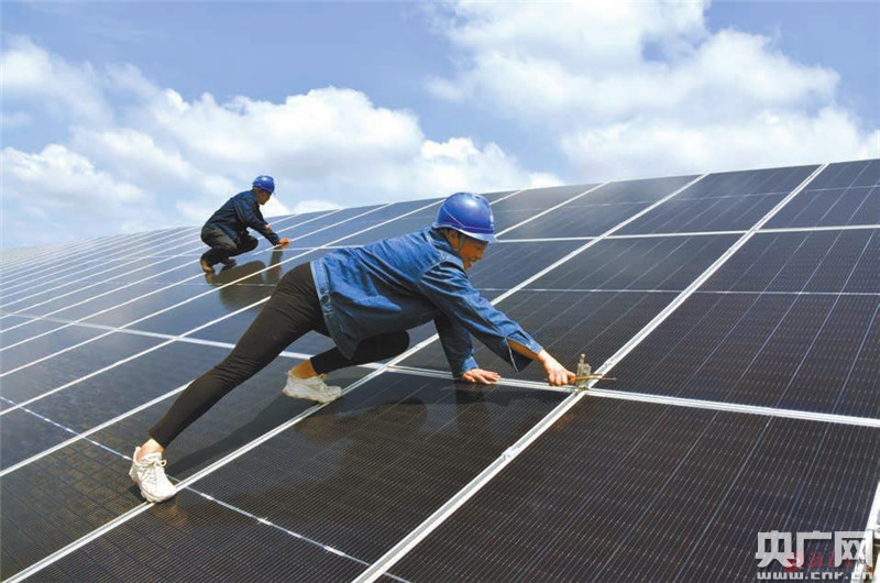 央廣網(wǎng)河南分網(wǎng)7月8日消息(記者 彭華 通訊員 孔浩)7月5日,駐馬店市正陽縣神州陽光新能源科技有限公司員工在房頂為群眾安裝光伏板。