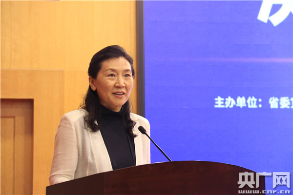 河南省委網(wǎng)信辦主任郭巖松在啟動儀式上致辭(央廣網(wǎng)記者 汪寧 攝)