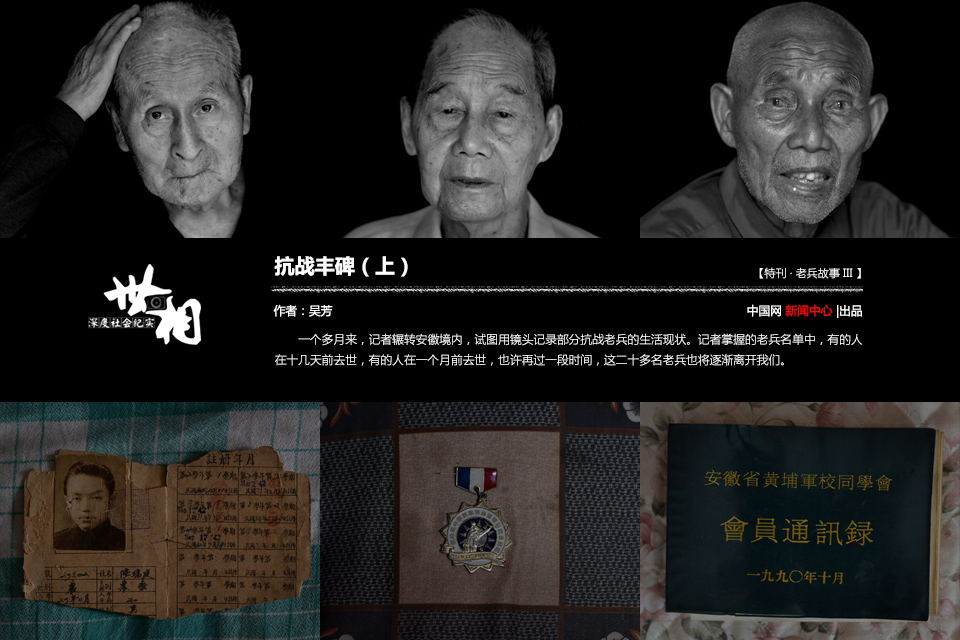 一個(gè)多月來,記者輾轉(zhuǎn)安徽境內(nèi),試圖用鏡頭記錄部分抗戰(zhàn)老兵的生活現(xiàn)狀。記者掌握的老兵名單中,有的人在十幾天前去世,有的人在一個(gè)月前去世,也許再過一段時(shí)間,這二十多名老兵也將逐漸離開我們。