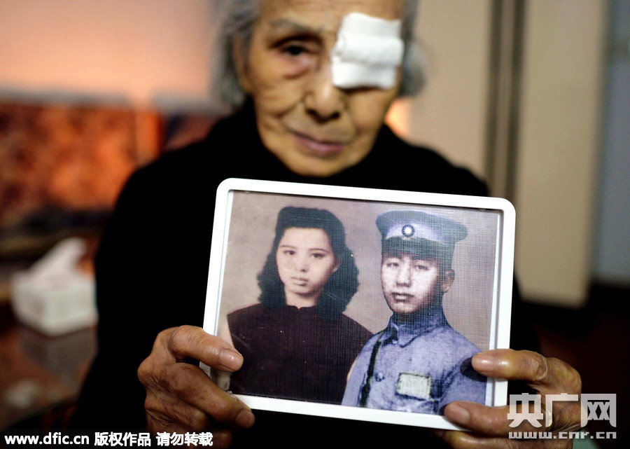 2014年12月3日,重慶渝中區(qū)望龍門一間小屋里,簡陋的小屋里,93歲的張淑英婆婆手中和前夫的合成合影照,是她心中最珍貴的愛情見證。93歲的張淑英婆婆在77年前,還是少女的張淑英,嫁給了榮昌籍軍官鐘崇鑫,兩年后,抗日戰(zhàn)爭爆發(fā),丈夫在戰(zhàn)場上馬革裹尸,南京雨花臺一役,丈夫壯烈殉國,夫妻從此相隔兩界。妻子聞丈夫殉國后,仰天痛哭,并一直尋找丈夫遺物,時隔77年,張淑英終于在臺灣找到丈夫的遺照。張淑英與鐘崇鑫兩年愛情,竟成77年相思。