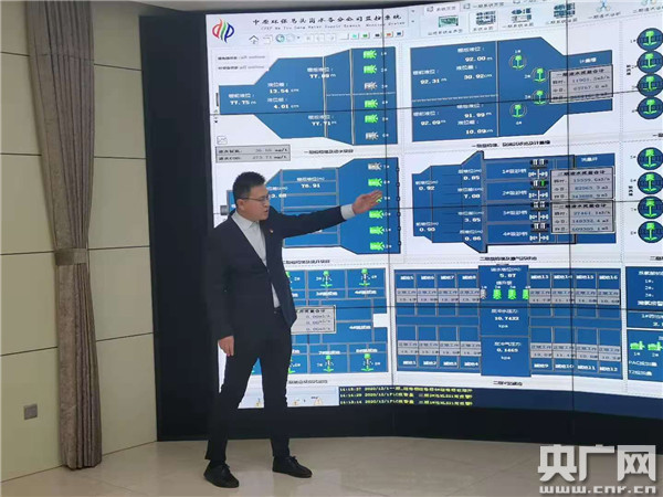 和笑天介紹污水處理實時監(jiān)控中心(央廣網(wǎng)記者 王勇生攝)