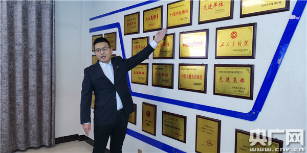 和笑天介紹工作室及公司所獲榮譽(央廣網(wǎng)記者 王勇生攝)