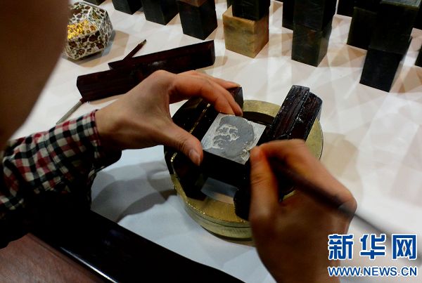 12月20日,楊江濤在進行篆刻創(chuàng)作。