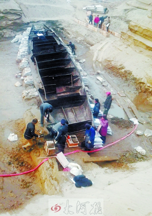 “未來,古船將被整體搬遷至回洛倉,因為古船和回洛倉都是與大運河有關!睆埲缫饨榻B說,因船只非常大,且周邊的交通又不便,搬遷整體難度較大。目前,洛陽市文物考古研究院正在研究制訂具體的搬遷方案。
