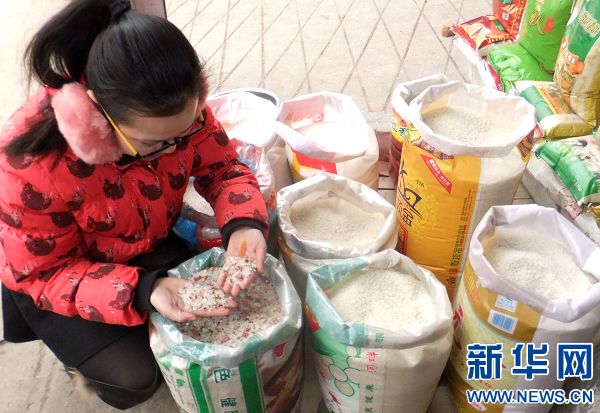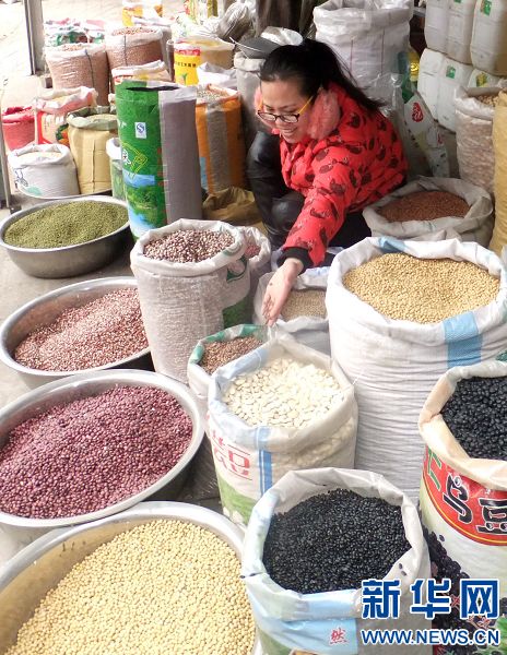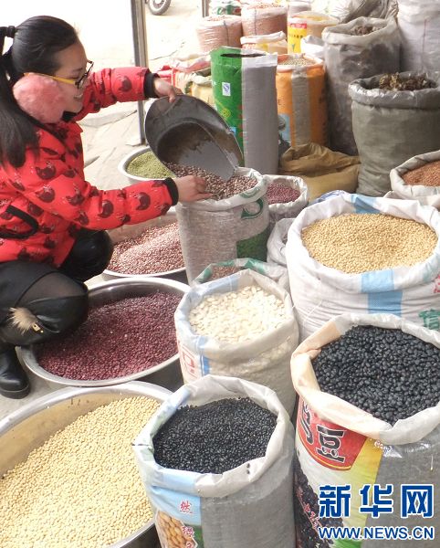 1月7日,市民在河南省平頂山市寶豐縣農(nóng)貿(mào)市場(chǎng)選購熬制臘八粥的五谷雜糧。