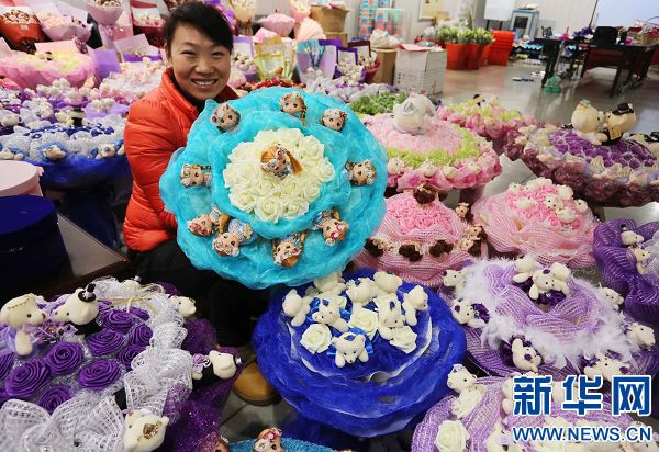 央廣網河南分網消息 據(jù)新華網報道:2月9日,在河南許昌一家花藝坊內,工作人員在制作顧客預訂的情人節(jié)鮮花花束。2月14日是西方情人節(jié),今年又恰逢正月十五傳統(tǒng)元宵節(jié),亦是中國“情人節(jié)”,中西情人節(jié)“喜相逢”。河南省許昌市眾多商家看準雙節(jié)合并的“商機”,紛紛使出妙招想要多多掘金,各大花店更是比拼“浪漫花招”,別出心裁地推出藍色玫瑰、七彩玫瑰、進口玫瑰、永生花盒、娃娃花束等品種繁多,價格優(yōu)惠的各種情人節(jié)鮮花、禮盒和飾品招攬顧客。隨著情人節(jié)的臨近,河南許昌各花店的鮮花預定業(yè)務也開始火爆起來,不少花店為了按時完成情人節(jié)當天的訂單,已開始加班加點趕制花束。