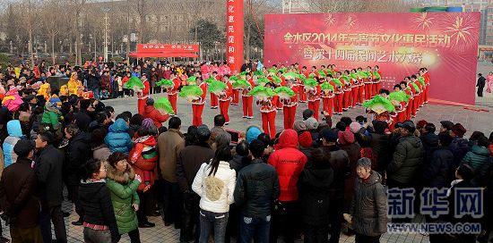 當日是農(nóng)歷正月十五元宵節(jié),鄭州市金水區(qū)舉行2014年元宵節(jié)文化惠民活動,來自17個街道辦事處的30支隊伍各展風采,秧歌、舞獅、旱船、腰鼓等精彩節(jié)目吸引了眾多市民駐足觀賞。(新華社記者 李安 攝)