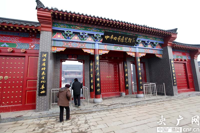 2月14日,游客走進(jìn)河南省寶豐縣中華曲藝展覽館。