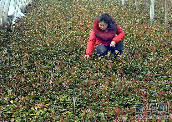 2月18日,一位林業(yè)工人在溫棚內(nèi)管理石楠扦插苗木。