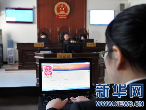 央廣網(wǎng)河南分網(wǎng)消息 據(jù)新華網(wǎng)河南頻道報(bào)道:近年來,隨著互聯(lián)網(wǎng)技術(shù)的不斷普及,河南省溫縣人民法院積極利用微博等移動(dòng)終端平臺(tái)開展工作。2013年以來,該法院重點(diǎn)選擇關(guān)注度高、影響大以及具有普法和教育意義的案件進(jìn)行庭審微博直播,并通過微博與群眾進(jìn)行互動(dòng),構(gòu)建起司法和民意對話的“微”橋梁。(新華社發(fā) 徐宏星 攝)
