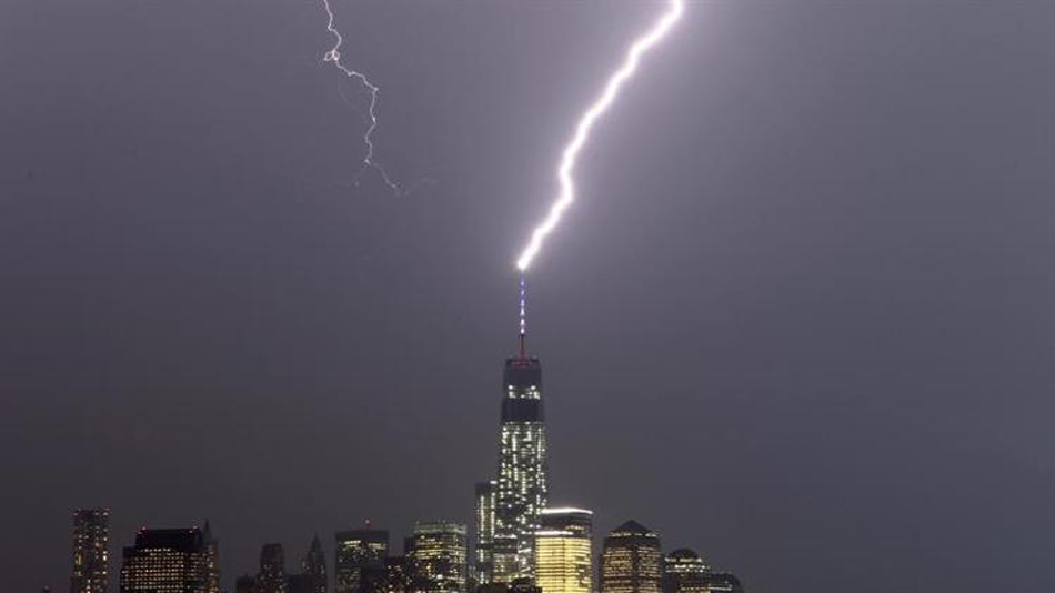 閃電多次擊中紐約世貿(mào)中心 史詩般壯觀