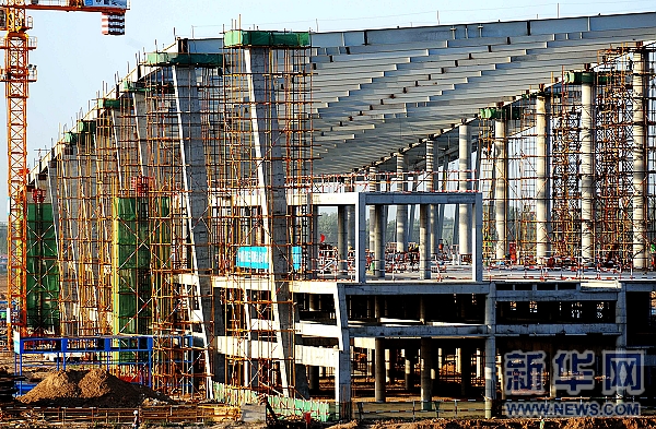 據(jù)介紹,作為鄭州航空港經(jīng)濟綜合實驗區(qū)的核心工程,鄭州新鄭國際機場二期工程以2020年為目標(biāo)年,設(shè)計年旅客吞吐量為2900萬人次、貨郵吞吐量50萬噸。該工程內(nèi)容包括新建第二跑道,T2航站樓,綜合交通換乘中心等一系列基礎(chǔ)設(shè)施以及空管工程、供油工程,建成后將成為具備空陸聯(lián)運條件,實現(xiàn)客運“零距離換乘”和貨運“無縫銜接”的現(xiàn)代綜合交通樞紐。(新華社記者 李安 攝)