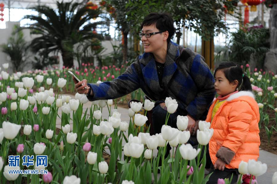 央廣網(wǎng)河南分網(wǎng)消息 2月17日,一位市民帶孩子在鄭州綠博園賞花游園。羊年春節(jié)將至,河南鄭州市內(nèi)街道、公園、廣場、景區(qū)到處張燈結彩;在鄭州市綠博園,一年一度的郁金香迎春花展也將于農(nóng)歷大年初一正式開幕,為節(jié)日增添喜氣。新華社記者 朱祥 攝