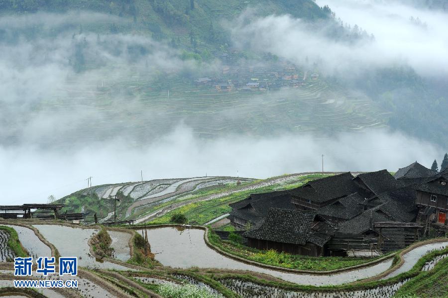 央廣網(wǎng)河南分網(wǎng)消息 仲春時(shí)節(jié),貴州省從江縣月亮山區(qū)腹地云霧繚繞,縱橫交錯(cuò)的梯田、苗寨在云山霧海中若隱若現(xiàn),濃淡虛實(shí)相得益彰,猶如一幅幅水墨丹青畫(huà)卷。新華社記者 陶亮 攝