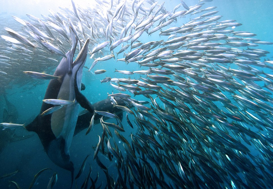 央廣網河南分網消息 3月28日報道,野生動物攝影師Michael Aw日前在水下拍攝到鯊魚、海豚等大型哺乳動物掠食沙丁魚的壯觀景象。