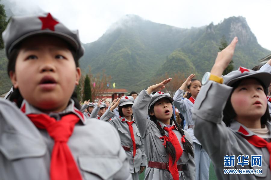 央廣網(wǎng)河南分網(wǎng)消息 3月29日,學生參加遵義婁山關紅軍小學總校舉行的升旗儀式。當日,全國紅軍小學建設工程理事會在貴州遵義革命老區(qū)分別舉行遵義婁山關紅軍小學總校和遵義習水楊得志紅軍小學授旗授牌捐贈儀式。新華社發(fā)(劉長龍 攝)