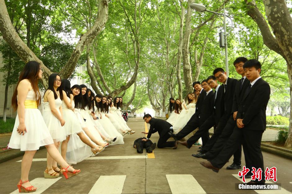央廣網(wǎng)河南分網(wǎng)消息 5月10日,安徽大學(xué)畢業(yè)班的學(xué)生們身著各種特色服裝拍攝創(chuàng)意畢業(yè)照。大學(xué)畢業(yè)季的到來,畢業(yè)生把畢業(yè)照玩出各種花樣,漢服、制服,婚紗等服裝或清純可愛、或端莊優(yōu)雅。據(jù)了解,此舉是用來紀(jì)念他們即將逝去的大學(xué)時(shí)光。中新社發(fā) 韓蘇原 攝