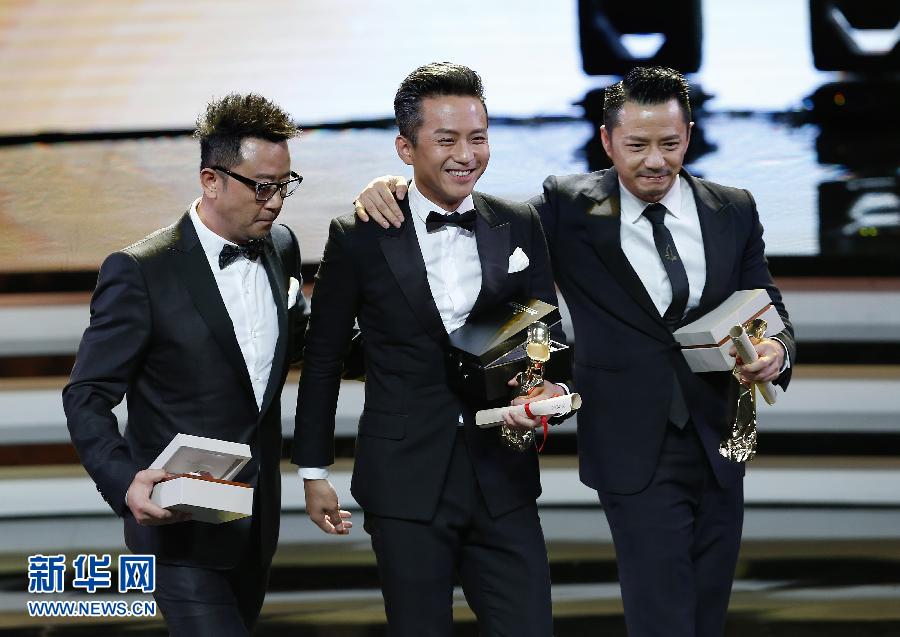 6月21日,演員鄧超(中)、段奕宏(右)、郭濤憑借影片《烈日灼心》獲得“金爵獎(jiǎng)”最佳男演員獎(jiǎng)。當(dāng)日,隨著金爵獎(jiǎng)獎(jiǎng)杯各歸其主,第18屆上海國(guó)際電影節(jié)落下帷幕。法國(guó)、比利時(shí)合拍片《守夜》獲金爵獎(jiǎng)最佳影片獎(jiǎng);中國(guó)影片《烈日灼心》成為當(dāng)晚的“大贏家”,導(dǎo)演曹保平獲最佳導(dǎo)演獎(jiǎng),最佳男演員獎(jiǎng)則由鄧超、段奕宏、郭濤分享。新華社記者 丁汀 攝