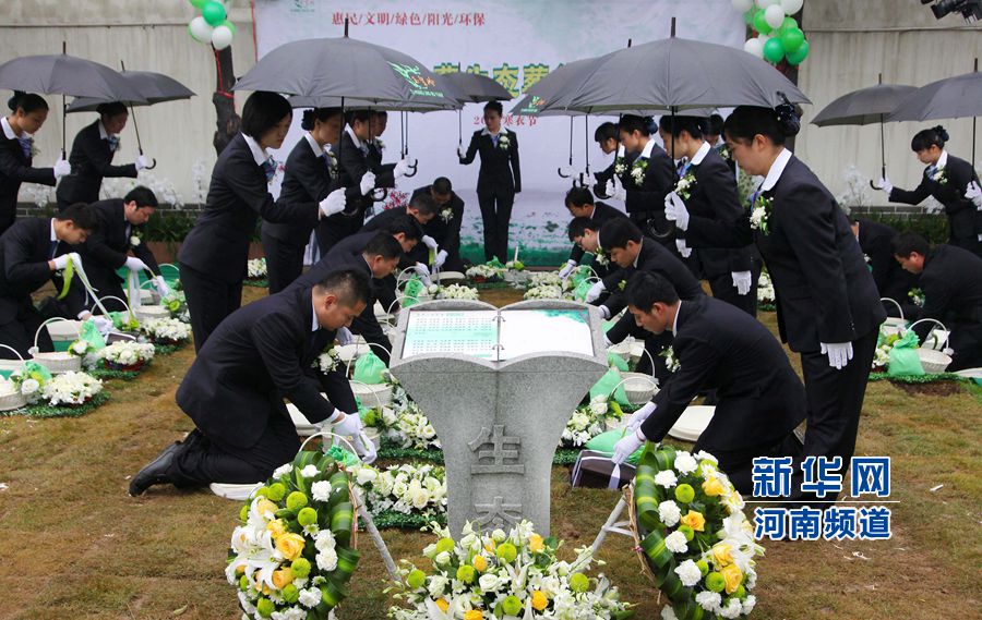 11月21日,河南許昌“關(guān)懷生命,伴綠長(zhǎng)青”免費(fèi)生態(tài)環(huán)保葬集體落葬儀式現(xiàn)場(chǎng)。