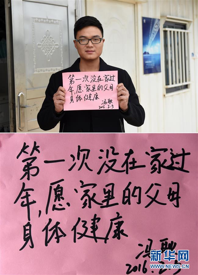 央廣網(wǎng)河南分網(wǎng)消息 2月5日,來(lái)自河南省駐馬店市的馮耿在良慶大橋立交工程建設(shè)工地上展示自己的新年寄語(yǔ)(拼版照片)。春節(jié)臨近,廣西南寧市良慶大橋(五象大道)立交工程建設(shè)工地的近千名建設(shè)者陸續(xù)回家了,剩下的幾名值班人將在異鄉(xiāng)度過(guò)這個(gè)春節(jié)。談起異鄉(xiāng)過(guò)新年,他們紛紛拿起紙筆寫(xiě)下心中的感受和新年的祝福。新華社記者陸波岸攝