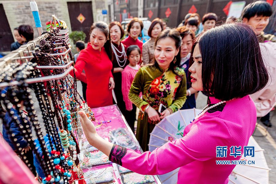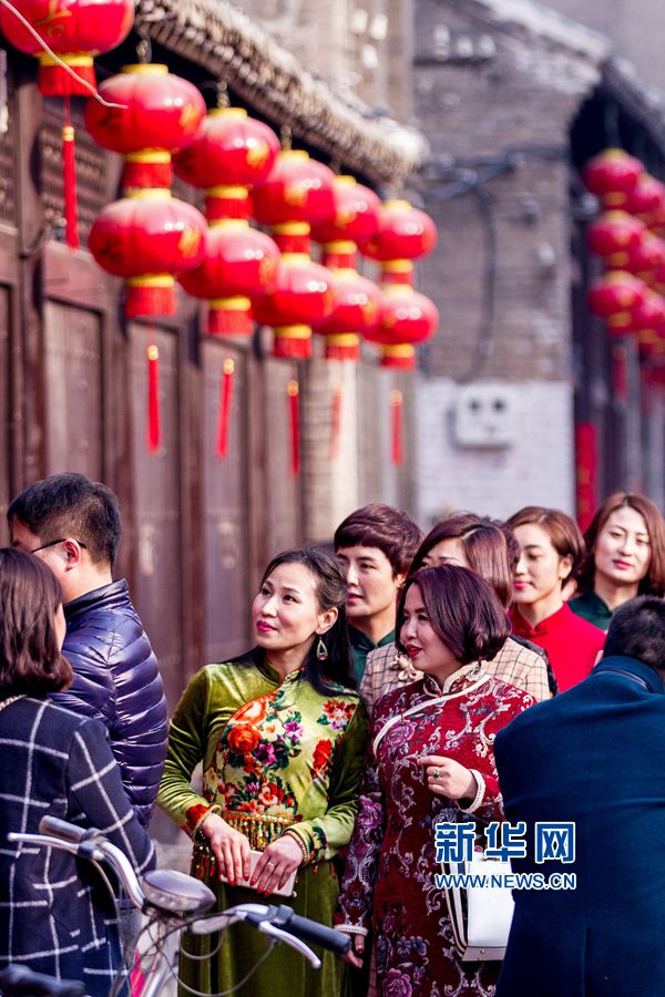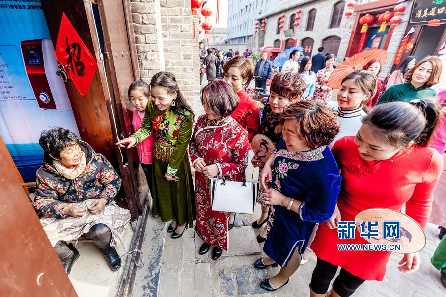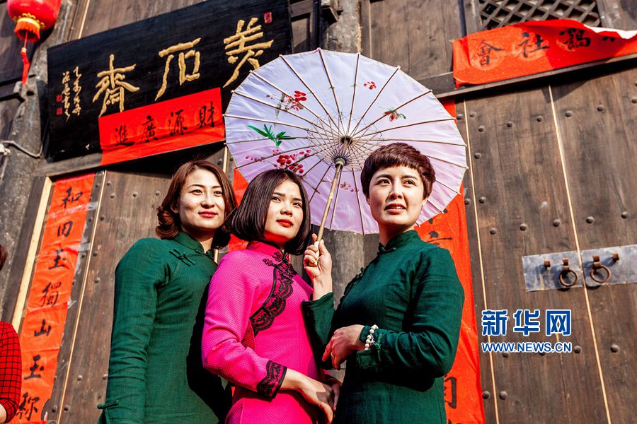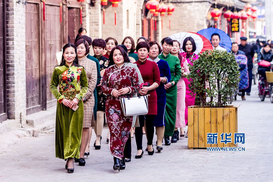 2016年2月27日,河南省滑縣大運(yùn)河畔的道口古鎮(zhèn),一群身穿旗袍的女士吸引了游客的目光。