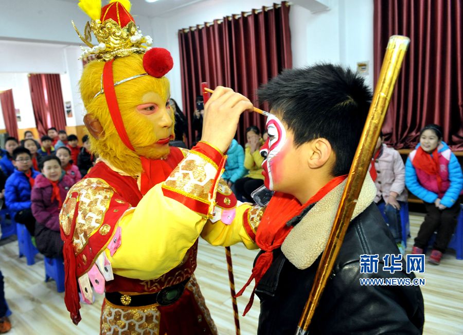 據(jù)了解,戲曲作為該校的特色校本課程,備受學(xué)生們喜愛,學(xué)校里組建了“梨園春光”戲曲愛好者社團(tuán),五年級還每周開設(shè)一節(jié)“戲劇”課,邀請省、市優(yōu)秀戲曲專家到學(xué)校進(jìn)行輔導(dǎo)。在豐富學(xué)生藝術(shù)內(nèi)涵、提高學(xué)生藝術(shù)修養(yǎng)和欣賞能力的同時(shí),也加深了孩子們對傳統(tǒng)戲劇的了解,通過戲劇課,學(xué)生學(xué)會了表演、化妝、音樂、劇情創(chuàng)編、舞美、道具制作等多種技能,傳承了中國優(yōu)秀傳統(tǒng)文化,感受到戲曲文化的獨(dú)特魅力。新華網(wǎng)發(fā)(丁友明攝)