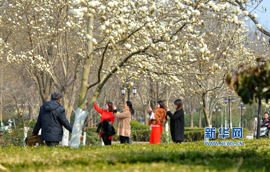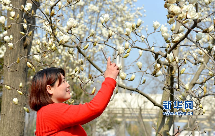 央廣網(wǎng)河南分網(wǎng)消息 近日,河南省商丘市夏邑縣公園、游園里的玉蘭花競相綻放,美不勝收,吸引市民紛至沓來,賞花拍照。玉蘭花是夏邑縣的縣花,該縣在公園、游園、道旁、花木園林里種植各類玉蘭樹,玉蘭種植已成為當(dāng)?shù)厣鷳B(tài)林業(yè)的特色。新華網(wǎng)發(fā)(苗育才攝)