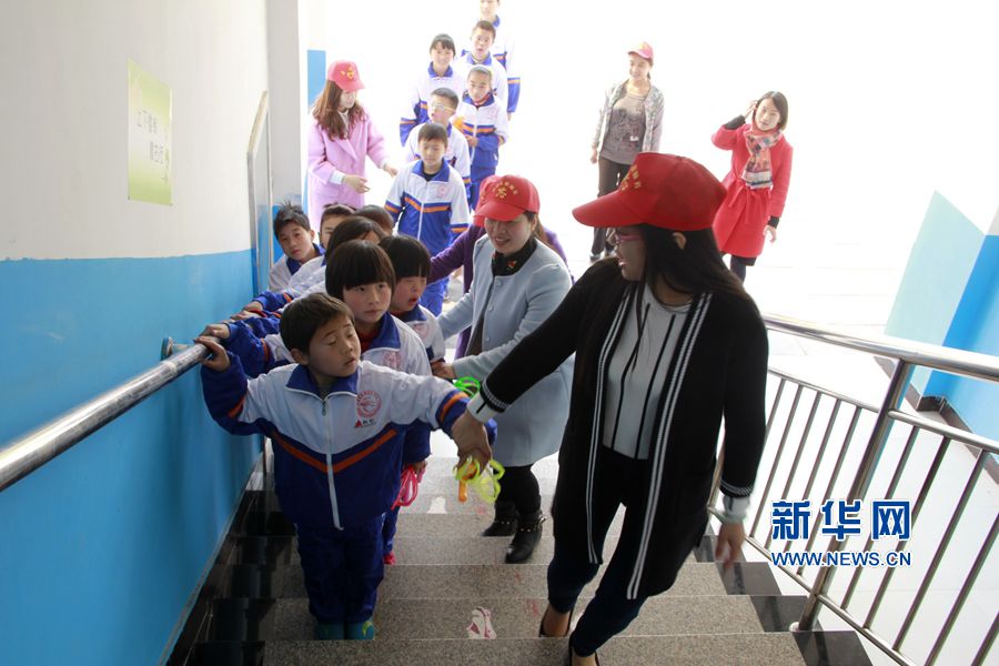 3月25日,河南省內(nèi)黃縣組織部黨員志愿者在給特殊教育學(xué)校的孩子講解上下樓安全常識。