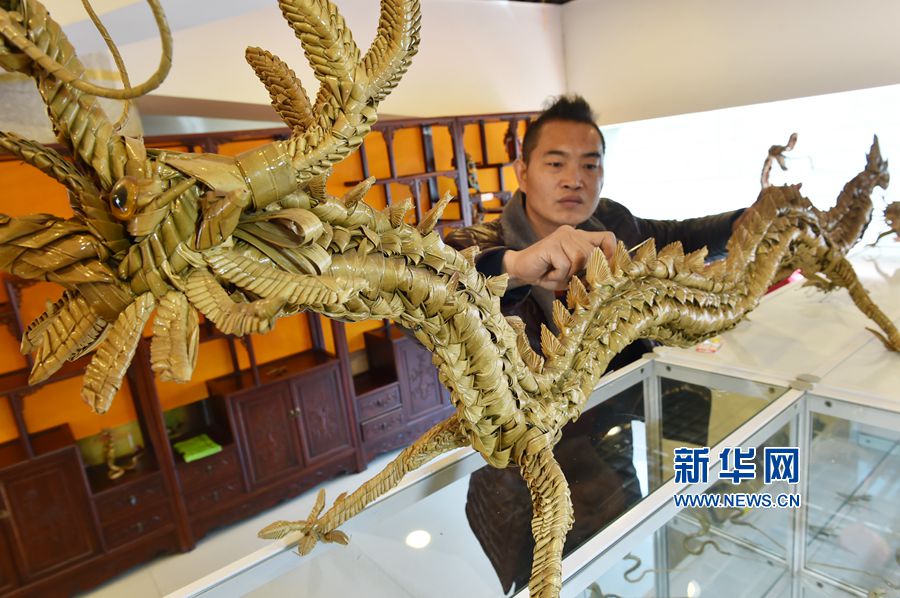 據(jù)王潤鑫介紹,一件精巧棕編作品的出爐,要經(jīng)過選材、熏蒸、陰晾、編織、刷漆等多道工序,其中最關(guān)鍵的編織階段,棕櫚葉還要經(jīng)過拉、疊、剪、折、插等多種編織技法工序。經(jīng)他手編織的花籃、十二生肖、蝴蝶、猴子、龍等上百余種動物和昆蟲造型,神態(tài)迥異,活靈活現(xiàn)。他還研究出花籃、龍等多種復(fù)雜棕編制品,頻頻亮相各類展會,受到更多人的喜愛和熟知。新華網(wǎng)發(fā)(黃政偉 攝)