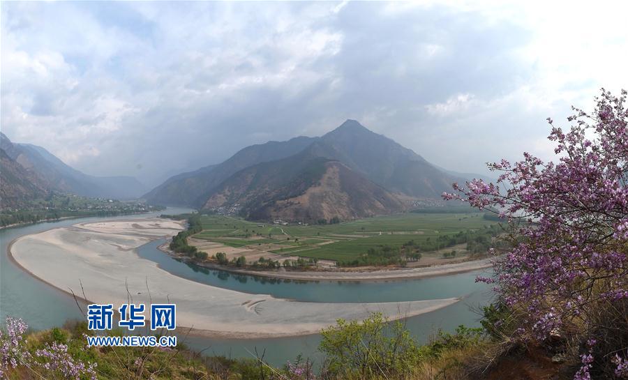 這是鮮花掩映下的“長(zhǎng)江第一灣”(3月29日攝)。 “長(zhǎng)江第一灣”位于云南省麗江市石鼓鎮(zhèn),萬里長(zhǎng)江從青藏高原奔騰而下,與瀾滄江、怒江一起在橫斷山脈的高山深谷中穿行形成并流的壯麗景觀。江水來到云南麗江石鼓鎮(zhèn),突然以急轉(zhuǎn)彎轉(zhuǎn)向東北,人們稱這天下奇觀為“長(zhǎng)江第一灣”。春日里的“長(zhǎng)江第一灣”,江水青碧,水勢(shì)舒緩,周邊鮮花綻放,美景迷人。新華社記者 藺以光 攝