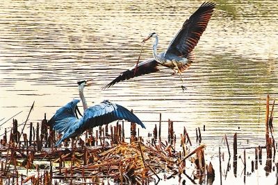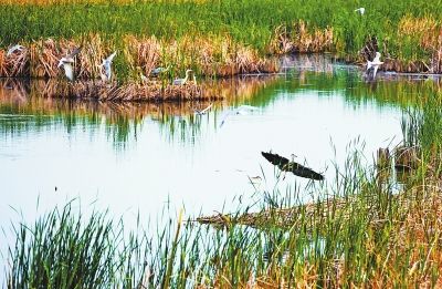 央廣網(wǎng)河南分網(wǎng)消息 5月10日,靈寶市西閆鄉(xiāng)黃河鼎湖灣里鳥(niǎo)兒飛舞,盡情嬉戲,構(gòu)成一幅美麗的畫(huà)卷。這里是黃河濕地國(guó)家級(jí)自然保護(hù)區(qū)的組成部分,近年來(lái),隨著生態(tài)建設(shè)的加強(qiáng),這里的自然環(huán)境得到保護(hù),鳥(niǎo)類越來(lái)越多。⑤4本報(bào)記者王天定攝