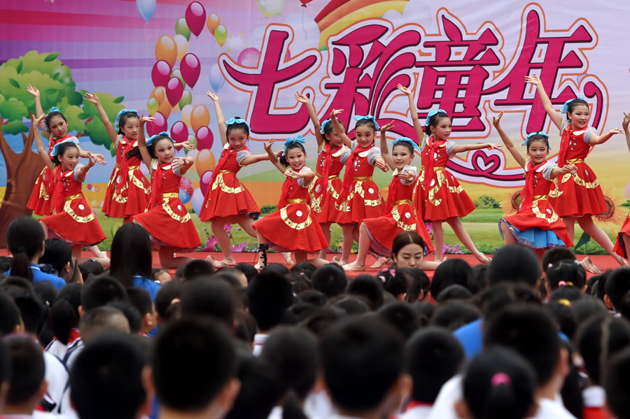 5月31日,鄭州市緯五路第一小學的同學們在進行舞蹈表演。 當日,河南省鄭州市緯五路第一小學舉行“七彩童年、鮮活綻放”文藝展演活動,孩子們進行舞蹈、啦啦操、太極扇等文藝表演,展示才藝,迎接“六一”兒童節(jié)。 新華社記者 李博 攝