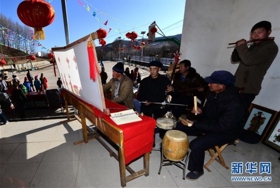 原標題:皮影匠人金文祿 1月24日,金文祿(右四)和同伴在排練春節(jié)時表演的皮影戲。 金文祿是青海省海東市化隆回族自治縣雙格達村村民,從事皮影雕刻制作藝術(shù)近14年。 通過不斷創(chuàng)新,金文祿在制作表演皮影戲所需的皮影之余,還自行創(chuàng)作了《水滸傳》《紅樓夢》中的人物皮影群像,并多次在青海省及海東市的民間藝術(shù)博覽會展中獲獎,深受當?shù)厝罕娤矏。新華社記者 王博 攝 -