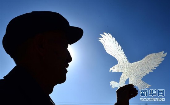 原標題:皮影匠人金文祿 這是1月24日拍攝的金文祿和他雕刻的鷹。新華社記者 王博 攝 -