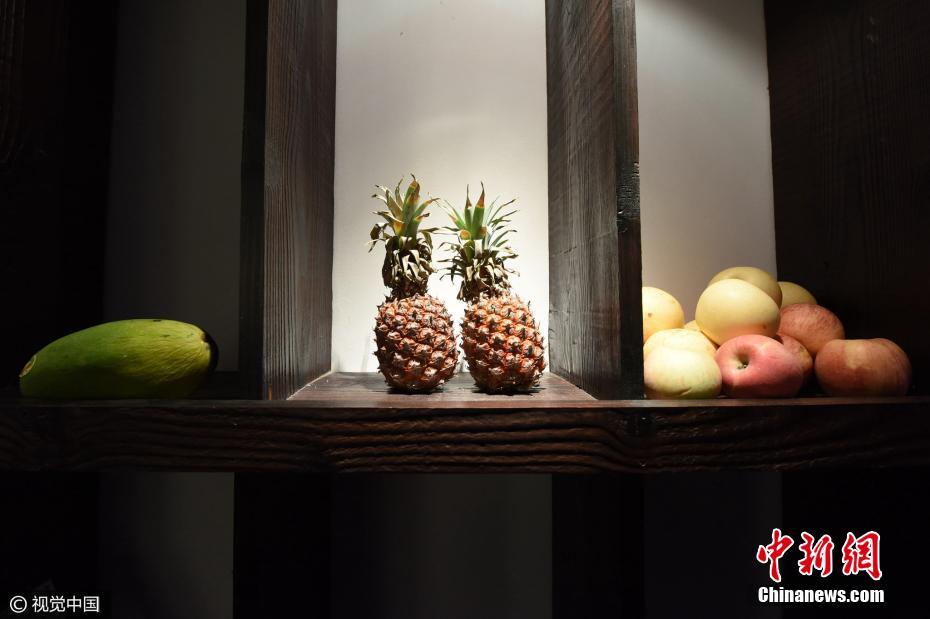 近日,杭州開出了一家奇葩書店“兩本書店”,書店占地30平方米,一面是一排放有書和蔬菜水果的書架,另一面是為讀者提供咖啡等飲料的吧臺(tái)。據(jù)了解,“兩本書店”是一家限時(shí)限量售書的書店。而且永遠(yuǎn)只賣兩本書,每?jī)芍芨乱淮螘科贩N。書目由愛讀書的人進(jìn)行推薦。龍巍 攝 圖片來源:視覺中國(guó)