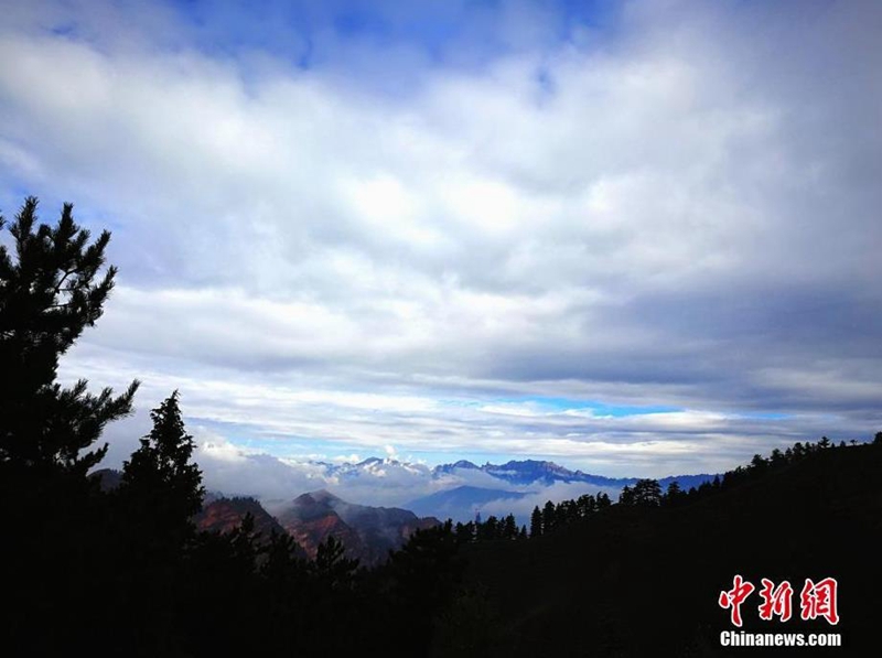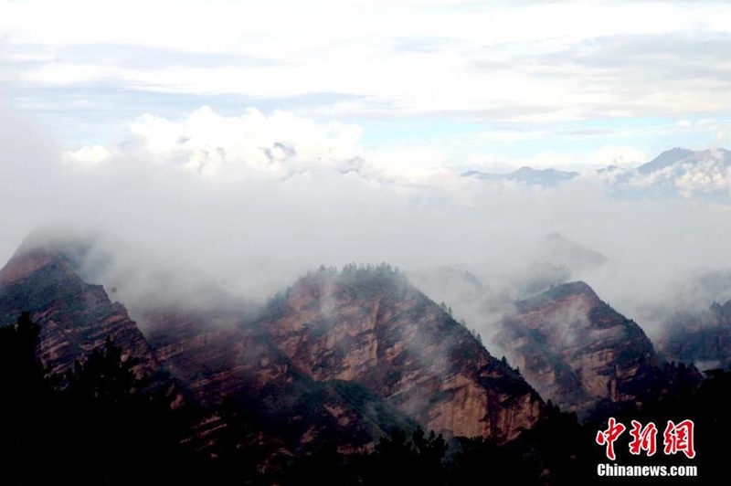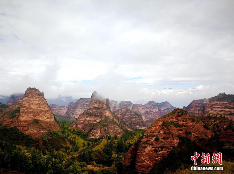 9月30日,在青海省東南部的坎布拉國家地質(zhì)公園,一場秋雨過后,煙霧繚繞,恍如人間仙境。坎布拉丹霞地貌以巨峰、方山、洞穴、峭壁為主,還有帷幕式地貌和蜂窩地貌,是藏民族的傳統(tǒng)棲息地,也是藏傳佛教復(fù)興發(fā)達(dá)重要之地,是國家級森林公園、國家級地質(zhì)公園、國家級水利風(fēng)景名勝區(qū),優(yōu)美風(fēng)景加之獨(dú)特文化內(nèi)涵,吸引大批游客和攝影家舉起鏡頭,參加當(dāng)?shù)嘏e辦的青?膊祭糜螖z影節(jié)。圖為?膊祭刭|(zhì)公園內(nèi)的巨峰。張?zhí)砀?攝 -