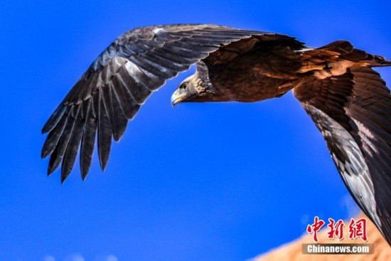 •   圖為國家一級保護動物金雕翱翔在空中。 郎文瑞 攝