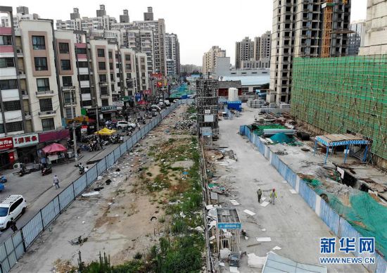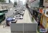 在鄭州市二七路上,圍擋占據(jù)了大部分人行道,行人與電動(dòng)車、機(jī)動(dòng)車混行一處,并不時(shí)有電動(dòng)車逆向行駛(7月10日攝)。 新華社記者 李安 攝 -